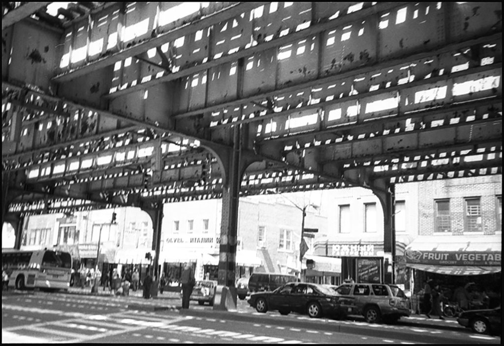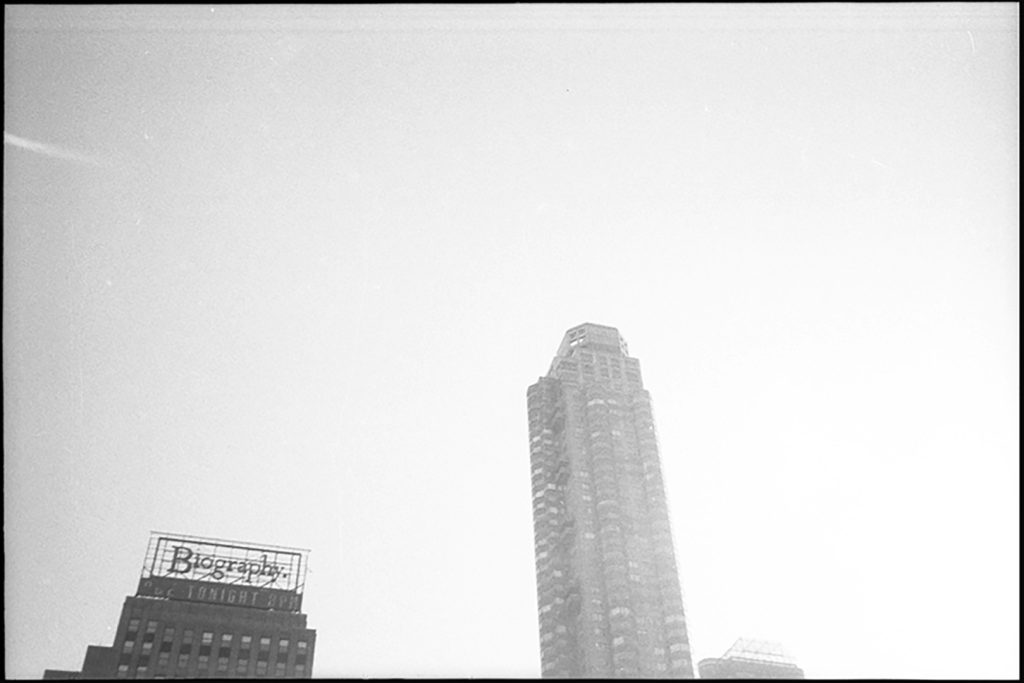 As I headed to New York City I wondered how to photograph such an over-exposed place. I ended up using a cheap automatic compact camera, shooting without looking through the viewfinder, just pointing my arm with no programmed framing. Some of the photos were shot backward behind my shoulders (and they came out upside down), others with automatic flash light on, others blurred and so on. I wanted to shake free from all the images of the city seen before and at the same time find out if it was true that everything there was already fixed like myth in our imagination. Eventually I printed the negatives using a standard exposure for every frame without checking whether it was correctly exposed or not and this is what came out.